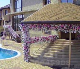 На территории находится бассейн с подогревом 8,5х4 м, беседка с мангалом . Много цветов, яркие клумбы.