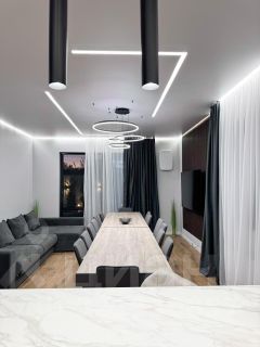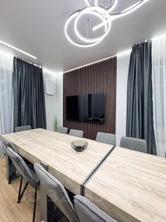 - Просторные Апартаменты: Три уютные спальни и два больших дивана обеспечивают комфортное размещение на ночь до 10 гостей.