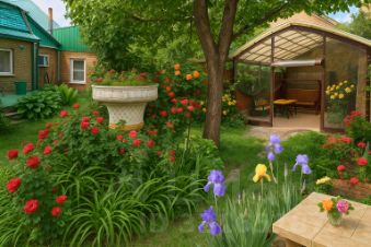 небольшой уютный до в котором имеются две спальни кухня санузел с душем одна комната побольше размера большая двуспальная кровать полностью вся мебель телевизор Очень хорошая мягкая постель с новым топпером мягкие подушки новые одеяла новые белоснежная постель вторая комната небольшая в которой три спальных места двухъярусная кровать с мягкими топперами широкими и плюс ещё дополнительно диванчик кухня оборудована всем необходимым посуда газовая плита холодильник стиральная машинка полностью необходимая вся посуда можно готовить душ небольшой и унитаз всё очень чисто уютно буду очень рада видеть у себя гостей Очень красивой зелений двор с уютными беседками и мангалом