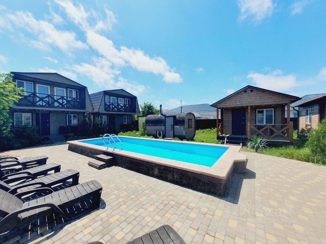 Круглогодичный Открытый Бассейн с подогревом длиной 8м шириной 4м, глубина от 1,5м с хорошей фильтрацией.