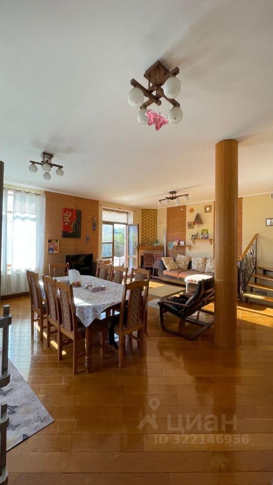 2 этаж: просторная гостиная, диван, 2 кресла, обеденная зона, кухонная зона (духовка, газовая плита, посудомоечная машина, 2 холодильника, сковородки, кастрюли, тарелки, приборы - всё что необходимо для приготовления пищи), спутниковое TV. На 2-ом этаже выход на веранду, вид на озеро.