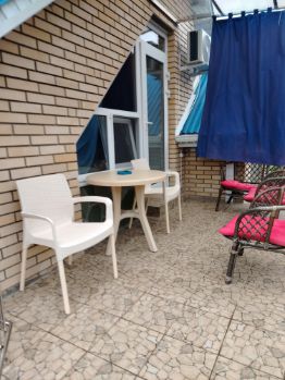 Сдаются апартаменты на мансарде 3х этажного дома. Лестница длинная, но удобная с балконом. В номере три комнаты(кухня_гостинная, две спальни), прихожая между комнатами, сан. узел. Три кондиционера, телевизор смарт, две двухспальние кровати 140200,диван раскладной, диван на кухне, полноценный кухонный гарнитур с набором посуды, плита газовая трехкомфорочная, мойка, холодильник, зеркало во весь рост, зеркало при входе, тумба для обуви, микроволновка, гладильная доска с утюгом, шкаф, вешалки, комоды, тумбочки, пылесос, фен, полотенца, мыло,туал.бумага,балконная мебель, сушилка, водонагреватель, wf. ВО дворе парковка, мангальная зона.