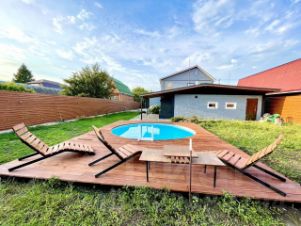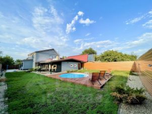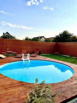 Дом для большой семьи, полностью с мебелью и техникой. Есть баня и бассейн с подогревом. Во дворе стоянка для 2-3 машин.