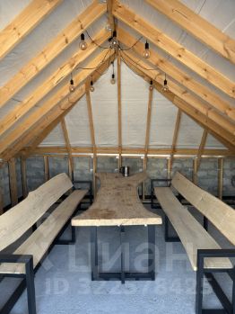 Зона с трех метровым столом со скамейками, холодильником, чайником