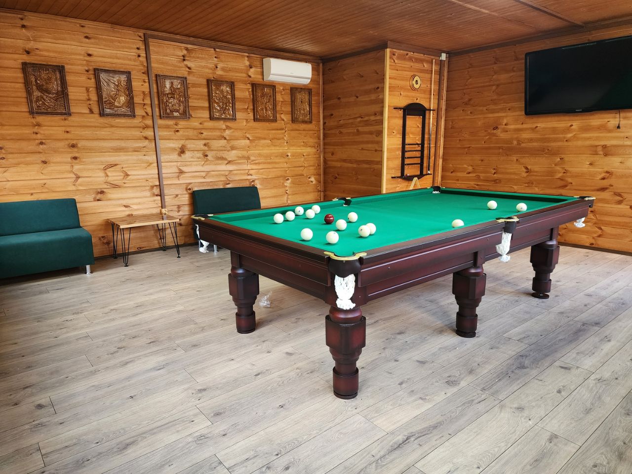 На территории находится бильярдная комната для вашего отдыха, оазис спокойствия и развлечений, где можно забыть о повседневных заботах и погрузиться в мир точного расчета и изящных ударов.