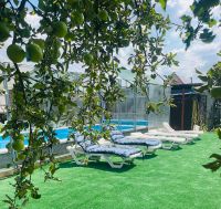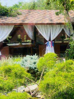 На территории большой банкетный зал до 50 человек), бoльшoй кpытый тёплый бaсcейн, тёплые бecедки.