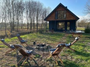 В доме 5 спальных мест, все на мансарде/в одной комнате,- отдельной спальни нет. Отопление электрическое. На первом этаже теплый пол и дровяная печь-камин; полноценная ванна 1,7м; проектор/экран шириной 2,3м; холодильник; индукционная плита; кофемашина Nespresso; электрочайник; микроволновка; караоке; музыкальная колонка; стиральная машина; бойлер; сплит; пылесос; парогенератор; гладильная доска; сушилка для белья; набор посуды; пледы для улицы. Постельное белье , полотенца, тапочки (в индивидуальной упаковке) и средства индивидуальной гигиены (кроме зубных).