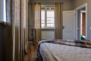 Кухня снабжена всем необходимым: холодильник, плита, посудомоечная машина, микроволновка и телевизор. Посуда, чайник и столовые приборы - по желанию.