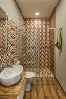 Описание коттеджа: кирпичное здание, в стиле ранчо, разделено на два сектора, с одной стороны две спальни (по одной двуспальные кровати в каждой комнате) и санузел с душевой кабиной, с другой кухня/столовая, сауна, предбанник, душевая и туалет отдельно, выход на террасу с летней кухней и бассейном.