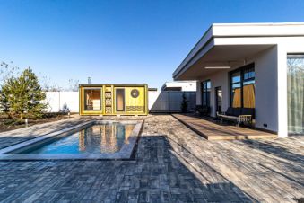Баня на дровах с выходом к бассейну