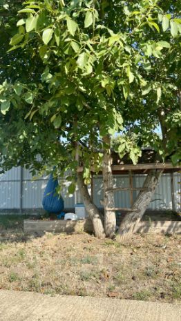 Участок 7 соток. Плодоносят 2 черешни, персик, абрикосы, яблоня, сливы, малина, орех.