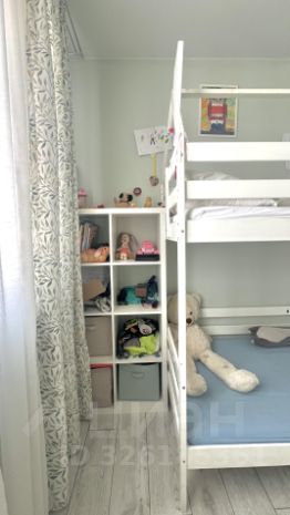 В детской двухъярусная кровать 180 на 90, подойдет даже подросшим детям.