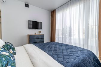 В доме две изолированные спальни с двуспальными кроватями, телевизором и кондиционером.