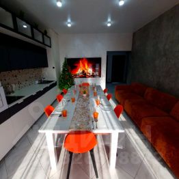 Кухнягостиная: оборудована всем необходимым для приготовления и приёма пищи; есть вместительный диван (дополнительное спальное место).
