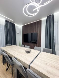 - Просторные Апартаменты: Три уютные спальни и два больших дивана обеспечивают комфортное размещение на ночь до 12 гостей.