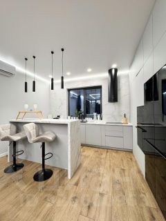 - Полностью оборудованная кухня с посудомоечной машиной, духовым шкафом и вместительным холодильником готовьте с удовольствием.