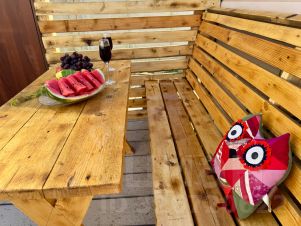 Есть все удобства: телевизор, сплит-система, кухонный гарнитур с необходимой посудой, индукционная плита, микроволновая печь, холодильник, фен, интернет.