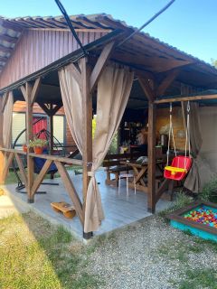 Беседка с кухонной зоной и холодильником