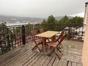 2 этаж: просторная гостиная, диван, 2 кресла, обеденная зона, кухонная зона (духовка, газовая плита, посудомоечная машина, холодильник, пароварка, сковородки, кастрюли, тарелки, приборы - всё что необходимо для приготовления пищи), спутниковое TV. На 2-ом этаже выход на веранду, вид на озеро.