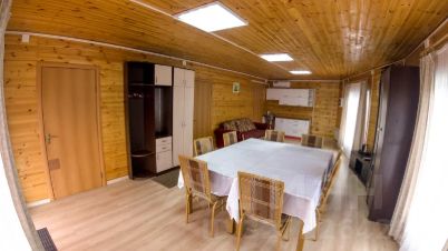 Это просторный дом с прекрасным видом прямо на озеро, где доступна спортивная рыбалка. Рядом расположена удобная парковка, поэтому можно подъехать к домику вплотную и не переносить вещи на расстояние. У дома две веранды: большая для отдыха компанией и небольшая для уединённых посиделок, а также собственные качели и мангальная зона.