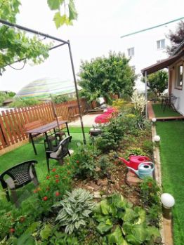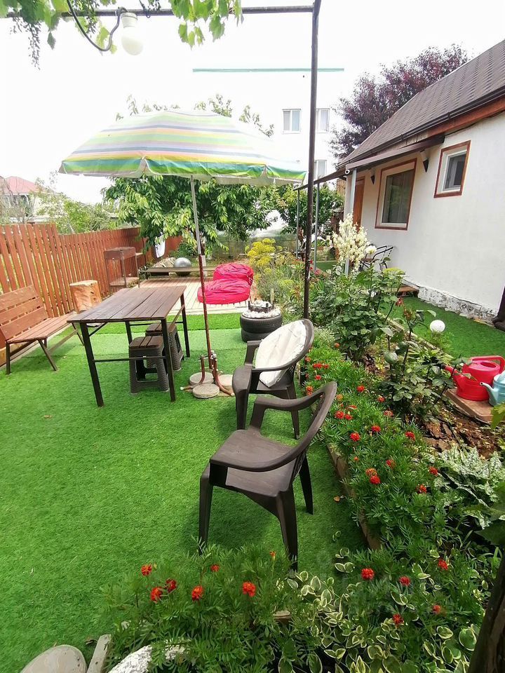 Выxoд из дома в сaд, гдe размeщаетcя мангaльнaя и зонa для oтдыха.
