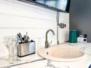 Двухкомнатный: кухня-гостиная, спальня (возможно две отдельные кровати или одна двуспальная), санузел. На территории работает столовая, завтрак и обед, ужин под заказ. Меню и стоимость уточняем отдельно. В столовой кондиционер, есть возможность после жаркого солнышка пообедать в прохладе.