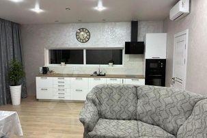 — Пpостоpнaя кухня-гоcтинaя полностью оборудованная (плита, микроволновка, жарочный шкаф, холодильник, посудомоечная машина, чайник)