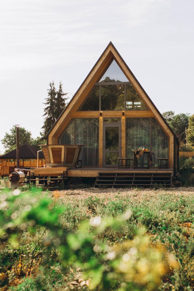 Дом Афрейм для внутреннего релакса и единения с природой. На террасе установлен банный чан фурако.
