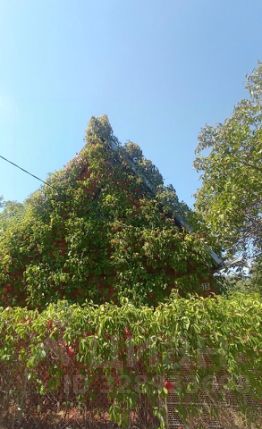 Все самое необходимое имеется ( стир.машинка, холодильник, электрическая плитка, чайник и т.п.) Кондиционера нет, но есть мощный вентилятор. Домик ,как жилище хоббитов укрыт вьюном,который защищает его от солнца.