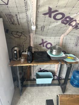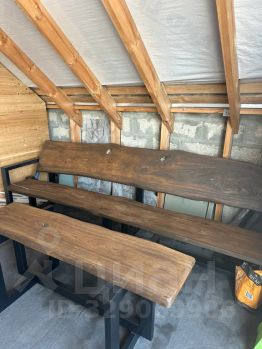 2. Обеденная зона: трёхметровый стол со скамейками, холодильник, чайник.