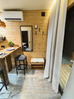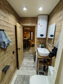 - Ванная комната: бойлер, раковина, душ с теплым полом, унитаз, стиральная машина, фен, тройные комплекты полотенец на каждого отдыхающего, и хозяйственные принадлежности для поддержания чистоты.