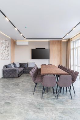Кондиционеры во всех комнатах, телевизоры в ключевых зонах, просторная гостиная для общих посиделок