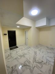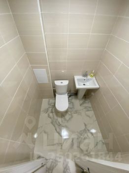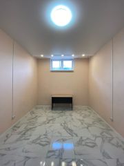 В помещение отдельный санузел (унитаз, тюльпан, есть место для стиральной машины или душевой кабины). На полу керамогранит, стены окрашены водоэмульсией (можно перекрасить в любой цвет), потолки натяжные.