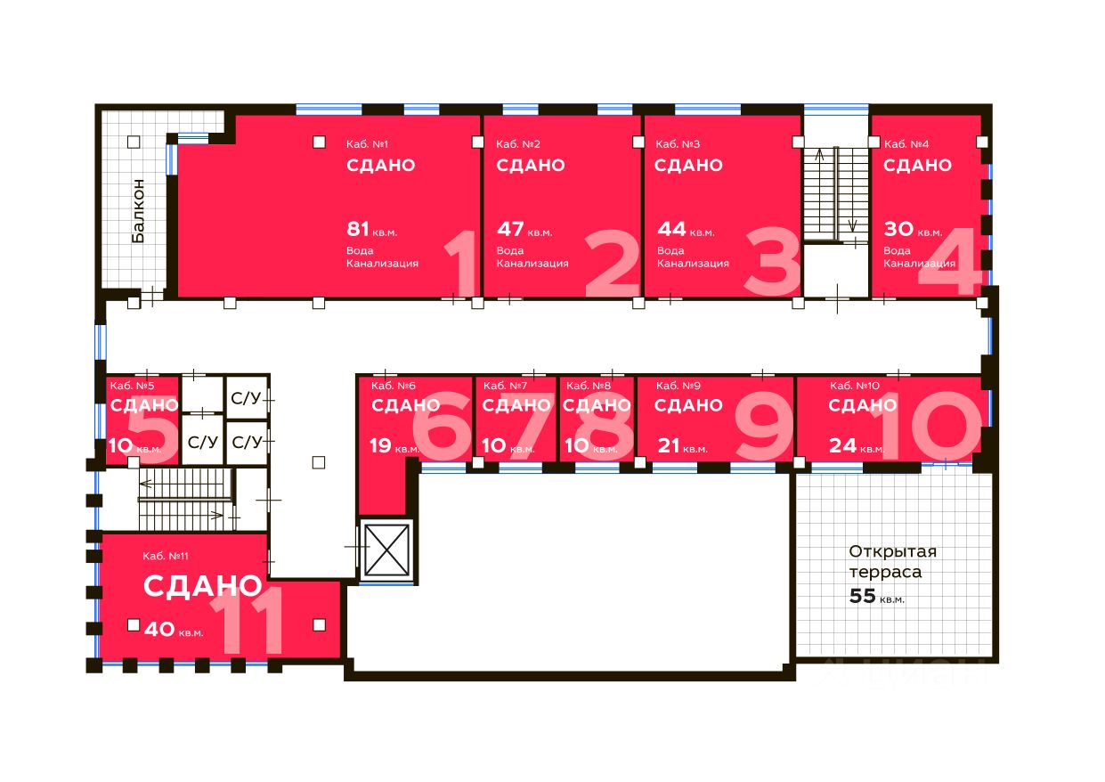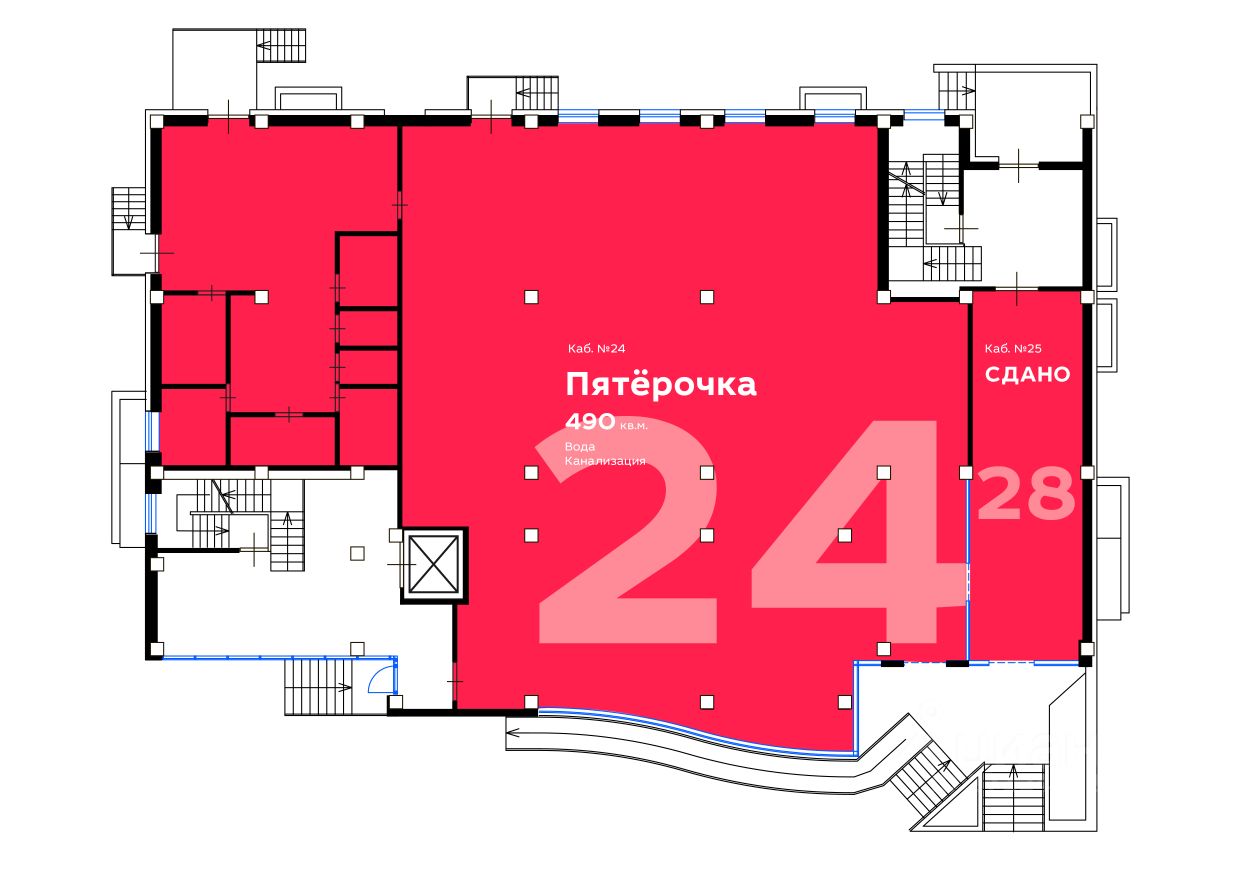 На данный момент в здании присутствует федеральный якорный арендатор. Пятерочка