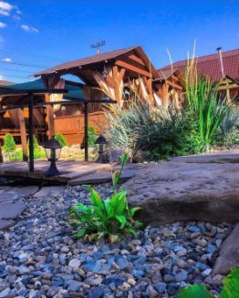 На участке есть 3 беседки, вместимостью 6, 8 и 17 человек. Возле беседок есть мангальные зоны.