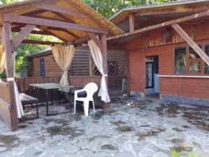 Гостевой дом 36 кв.м. с санузлом и комнатой отдыха, баня на дровах 54 кв.м., в ней столовая, парилка, душ. Постройки выполнены из сруба, на усиленном фундаменте, установлены сплит-системы. Так же есть домик для проживания персонала.