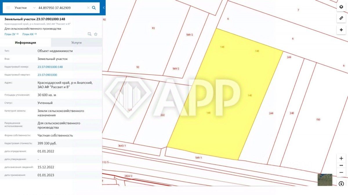 - Вид разрешенного использования: для сельскохозяйственного производства