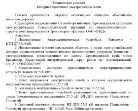 - выполнены технические условия и установлена трансформаторная подстанция, мощностью до 500 кВт.