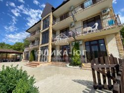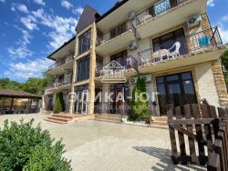 В курортном поселке Лермонтово выставлен на продажу гостевой дом, зарекомендовавший себя достойным местом для отдыха на Черноморском побережье. Гостевой дом находится на возвышении от куда открывается завораживающий вид на море и горы, до пляжа 10-15 минут ходьбы пешим шагом. Здание монолит облицован дагестанским камнем, три этажа, на каждом из которых просторные номера. Плюс есть возможность добавить 8 номеров на мансарде, уже выведены водоотводы установлены трубы.Все коммуникации центральные, так же имеется своя скважина и большой бак для запаса воды. На первом этаже ресепшен, два люкса со всеми удобствами к каждому отдельный вход. Две кухни для самостоятельного приготовления пищи. На втором и третьем этажах по 6 номеров, так же оборудованных для комфортного пребывания гостей( телевизор, холодильник, кондиционер, сейф ,текстиль, душевые принадлежности).Лестничные пролеты удобные. Двор гостевого дома состоит из трех уровней, нижний это парковка и главная лестница к дому, двор выложен плиткой, большая беседка , открытая терраса со столиками от куда открывается вид на море. В верхнюю часть двора мы попадаем с третьего этажа. Там расположился бассейн 4/8 и детский 1.5/ 4, шезлонги, зонты, есть своя сауна с душевой не большая детская площадка.Прачечная оборудована всем необходимым. Котельная имеет два котла электрический и жидкое топливо,бойлер . Поднимаемся выше и попадаем на задний двор где находится вторая стоянка и зона отдыха с гамаками расположенные между можжевельниками и ветвистыми дубами, воздух чистый, тишину нарушает лишь пенье птиц. Установлено видео наблюдение, есть вайфай. В шаговой доступности вся инфраструктура с.Лермонтово - сетевые магазины, аквапарк, экскурсии, аптеки и т.д. Земля и здания в собственности. Все остальные вопросы по телефону. Номер объекта в нашей базе 1168.