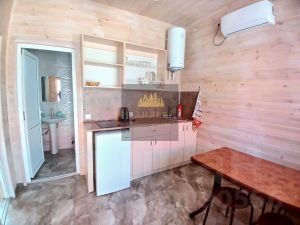 В втором одноэтажном здании 90 кв.м.: 3 номера с террасами, кухнями. В каждом номере по две комнаты.