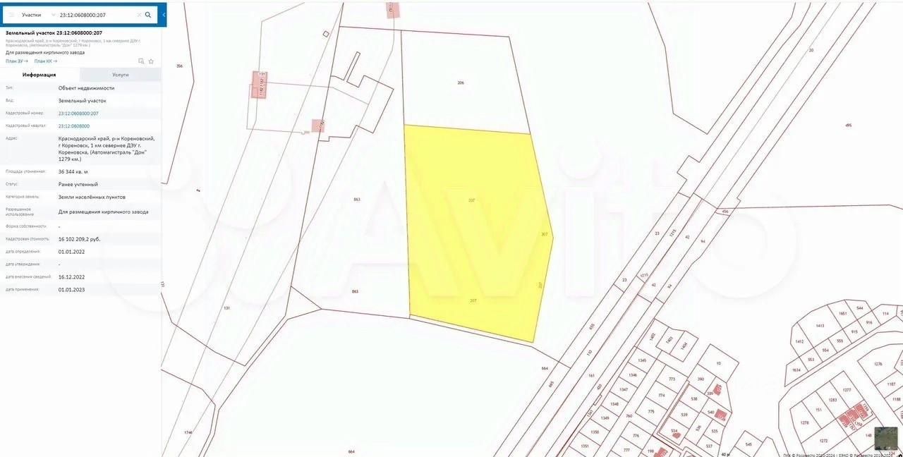 Продаётся земельный участок кадастровый номер (КН) 23:12:0608000:207 расположенный по адресу: 353180, Краснодарский край, Кореновский район, г.Кореновск, 1км севернее ДЭУ г. Кореновска, (Автомагистраль Дон 1279 км.).