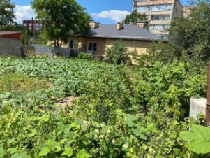 Фасадная часть участка - 16 метров, боковая часть участка - 48 метров. Придомовая территория - 300 м², для парковочных мест. Заезд (подъезд) возможен с двух сторон улиц (фасадной и боковой). Соседние собственники земли только с одной стороны земельного участка.