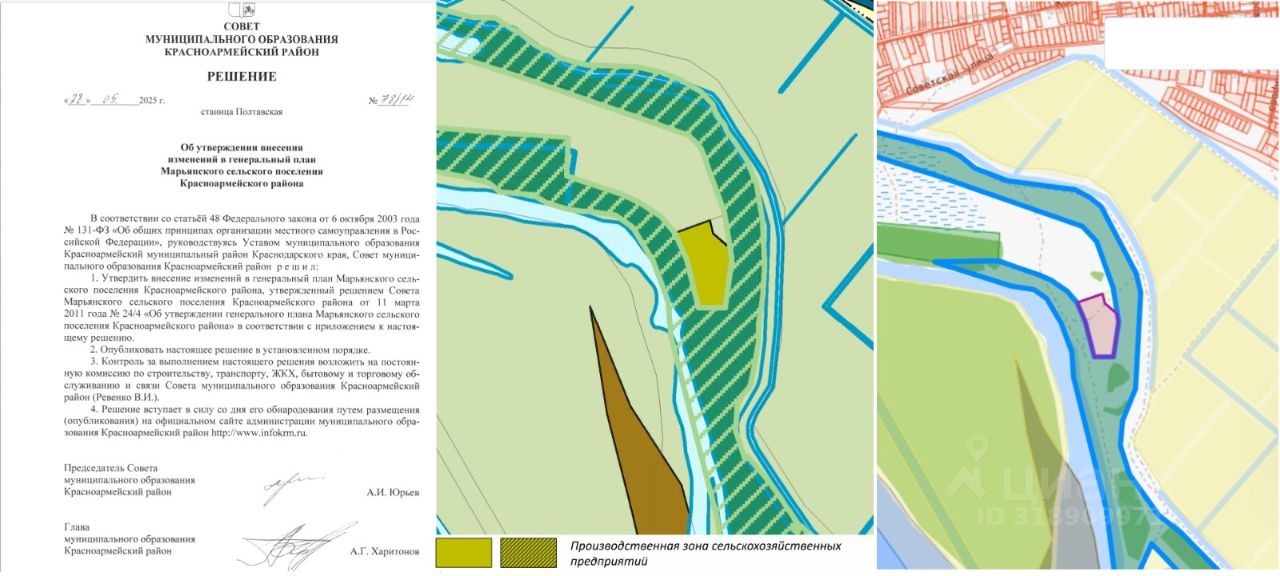 Земельному Участку присвоили зону - Производственная Зона Сельскохозяйственных предприятий. РЕШЕНИЕ от 28.05.2025 года. Это позволяет вести капитальное строительство - большого количества капитальных зданий и объектов ! Производство, складирование, торговля, Разведение Рыбы и Животных, Логистические центры, и другие виды деятельности для капитального строительства!