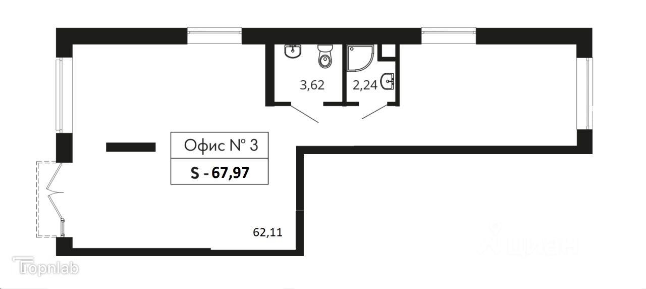 Доступны помещения площадью от 38 до 68 квадратных метров.