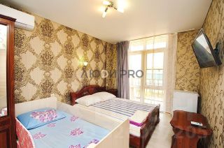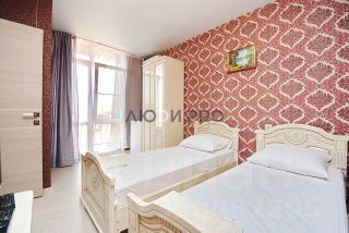Удобные широкие кровати с ортопедическими матрацами, новое постельное бельё, телевизор, холодильник , шкаф, кондиционер, балконы, сан узел в кафеле, душевая кабина, полный набор новых гигиенических принадлежностей.