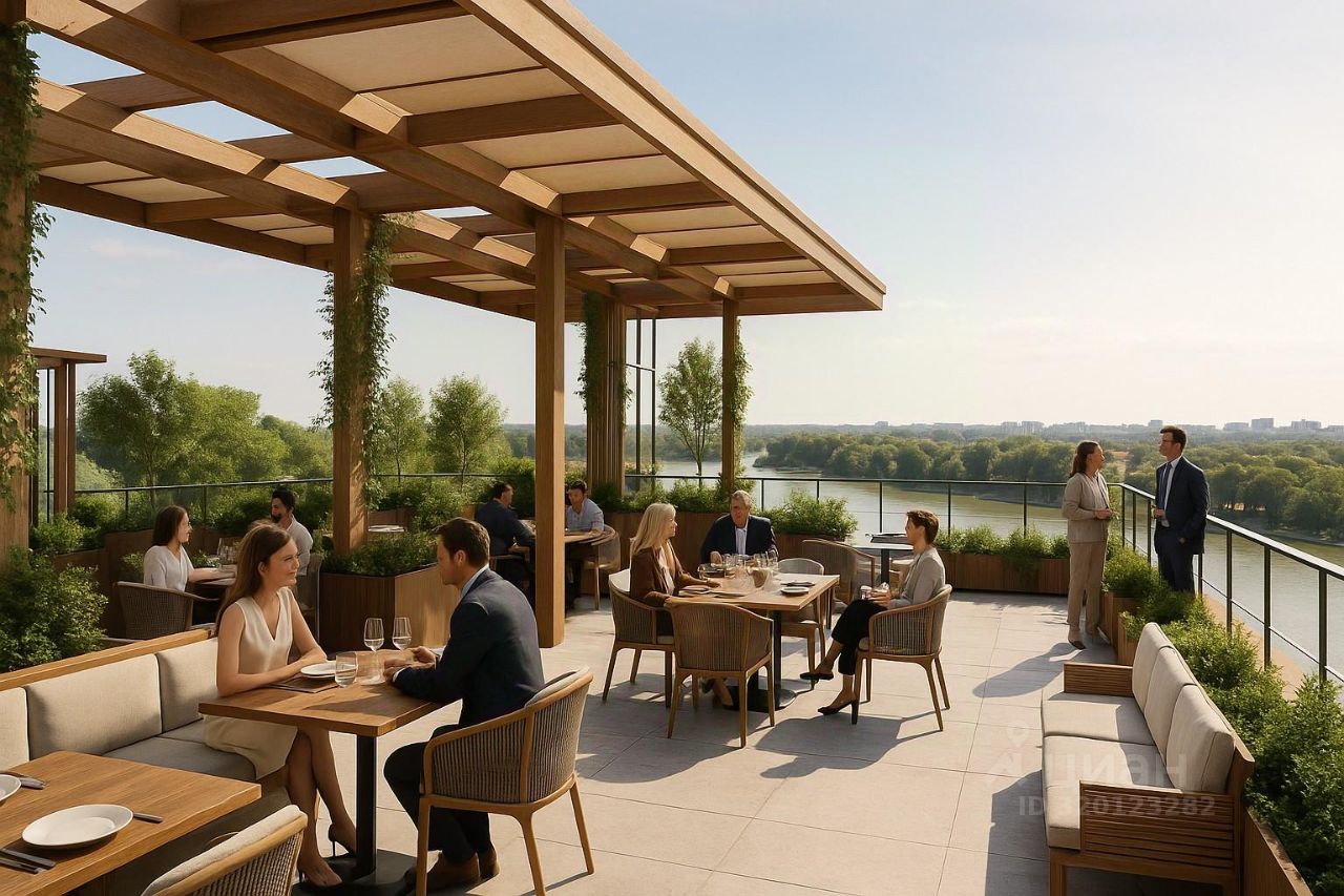 Прямая видовая линия на реку — уникальный для центра города параметр. Позволяет реализовать флагманский ресторанный формат на эксплуатируемой кровле с высокой арендной ставкой и капитализацией площади.