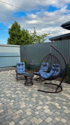 Двор вымощен тротуарной плиткой. На территории находится: беседка, мангальная зона, банный чан, зона отдыха с садовой мебелью.