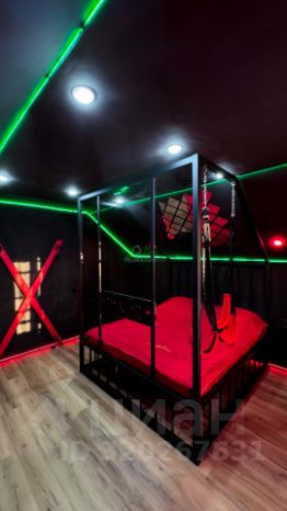 Укомплектованная прихожая, оборудованная кухня-гостиная со всей необходимой посудой и техникой, тематическая спальная комната с атрибутикой 18+, совмещенный санузел с тропическим душем.