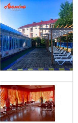 Кроме того, на территории имеется крытый бассейн, спортивная площадка, летнее кафе, зона для загара, бытовые сооружения (пищеблок, др. подсобные помещения).