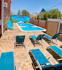 Гостиничный комплекс занимает земельный участок общей площадью 25 соток, на котором расположены: бассейн, зоны отдыха, баня-сауна, мангальная зона и барбекю, детская площадка.